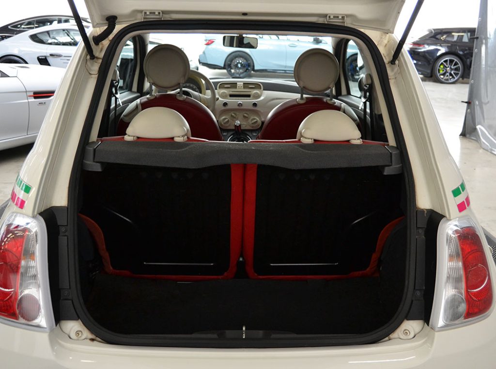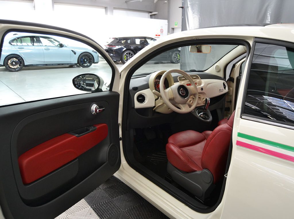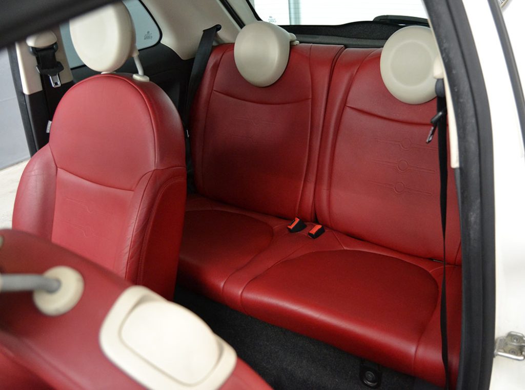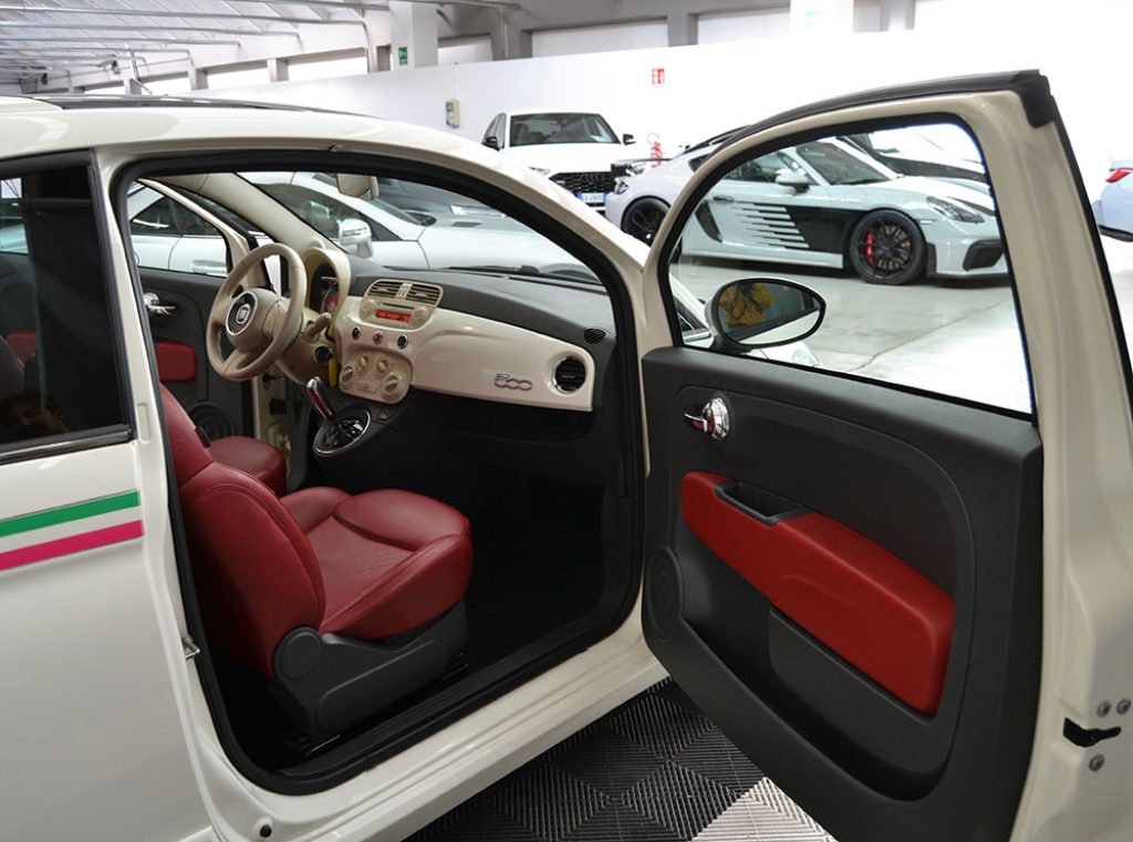 INTERNI IN PELLE FRAU TOTALE ROSSA, VOLANTE IN PELLE MULTIFUNZIONE, CLIMATIZZATORE, ISOFIX, HI-FI CON LETTORE CD E USCITA USB, TETTO PANORAMICO, SPECCHI RETROVISORI ESTERNI REGOLABILI ELETTRICAMENTE, FASCE PARACOLPI LATERALI CON LOGO 500, FENDINEBBIA, RUOTINO, CERCHI IN LEGA DA 15".