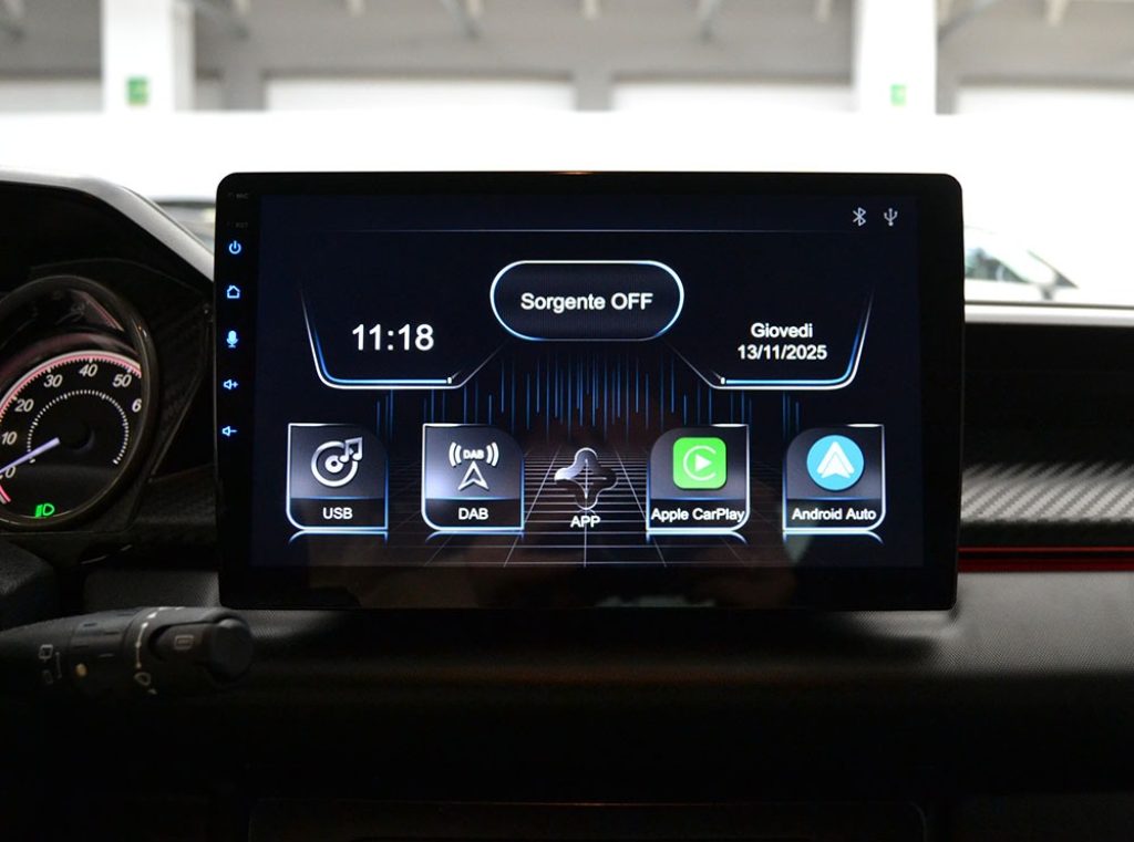 INTERNI IN PELLE A ROMBI CON CUCITURE ROSSE IN RILIEVO, VOLANTE IN PELLE, HI-FI CON MULTIMEDIA ANDROID, APPLE CAR PLAY, USB, CLIMATIZZATORE, VETRI ELETTRICI, SERVOSTERZO, VETRI POSTERIORI OSCURATI, RETROCAMERA, LUCI DIURNE A LED, CERCHI IN LEGA DA 16", CONDIZIONI PARI AL NUOVO.