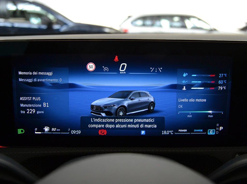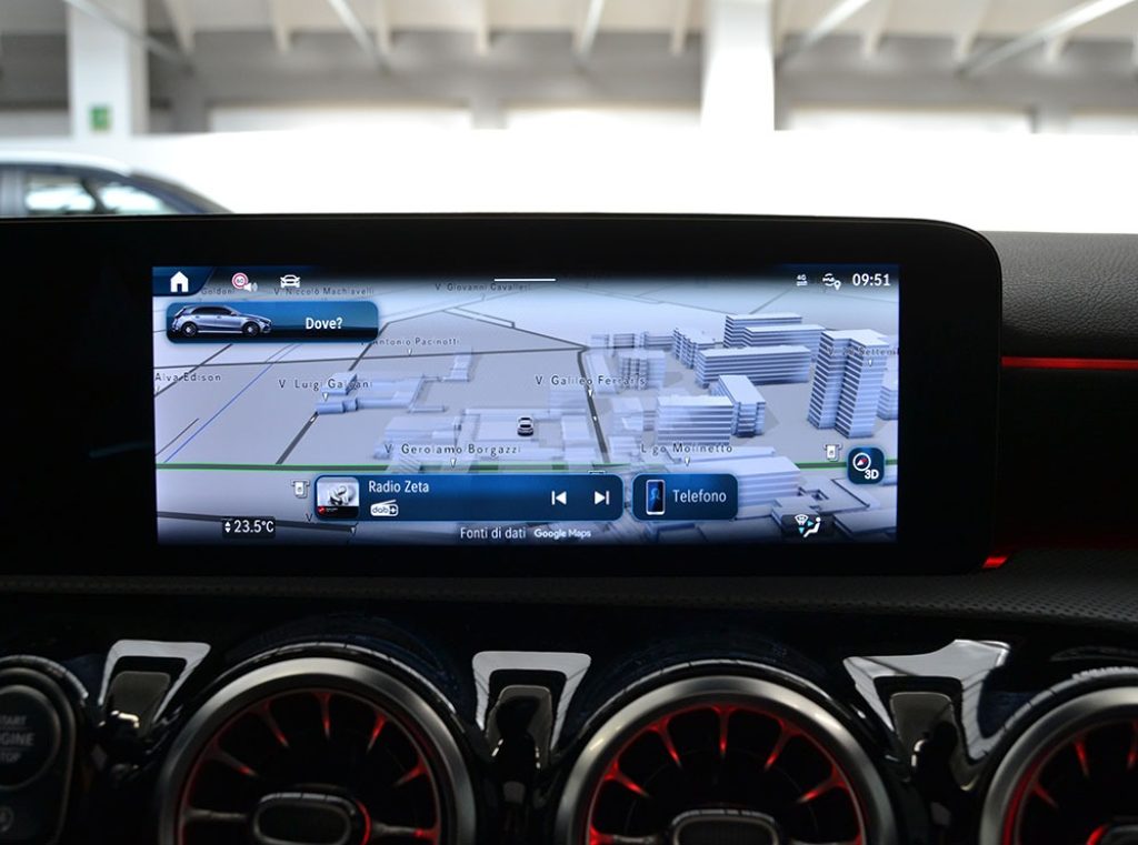 INTERNI IN PELLE E ALCANTARA NERI CON CUCITURE ROSSE, SUPPORTO LOMBARE, SEDILI ANTERIORI RISCALDABILI, VOLANTE IN PELLE SPORTIVO AMG MULTIFUNZIONE CON PADDLES E SELETTORI AMG, CRUISE CONTROL, LUCI SOFFUSE CON POSSIBILITA' CAMBIO COLORE, ISOFIX, DYNAMIC SELECT, NAVIGATORE CARTOGRAFICO 16/9 CON SCHERMO TOUCH SCREEN, RADIO DAB, BLUETOOTH, USCITA USB, APPLE CARPLAY, PHONE BOX ( CARICA TELEFONO SENZA FILI ), ATTENTION ASSIST, SISTEMA ASSIST FRENATA E ANTISBANDAMENTO, SENSORE LUCI, SPECCHI RETROVISORI ESTERNI RIPIEGABILI ELETTRICAMENTE, KEYLESS GO ( APERTURA/CHIUSURA PORTE E ACCENSIONE MOTORE SENZA CHIAVE ), TETTO PANORAMICO APRIBILE, VETRI POSTERIORI PRIVACY, PACCHETTO AERODINAMICO AMG, PACCHETTO NIGHT AMG I E II CON MASCHERINA DEL RADIATORE SPECIFICA AMG SCURA E CARATTERI TIPOGRAFICI IN NERO LUCIDATO A SPECCHIO, SENSORI PARCHEGGIO ANTERIORI E POSTERIORI, RETROCAMERA, FARI LED HIGH PERFORMANCE, PINZE DEI FRENI ROSSE, CERCHI IN LEGA DA 19" AMG A 5 DOPPIE RAZZE.