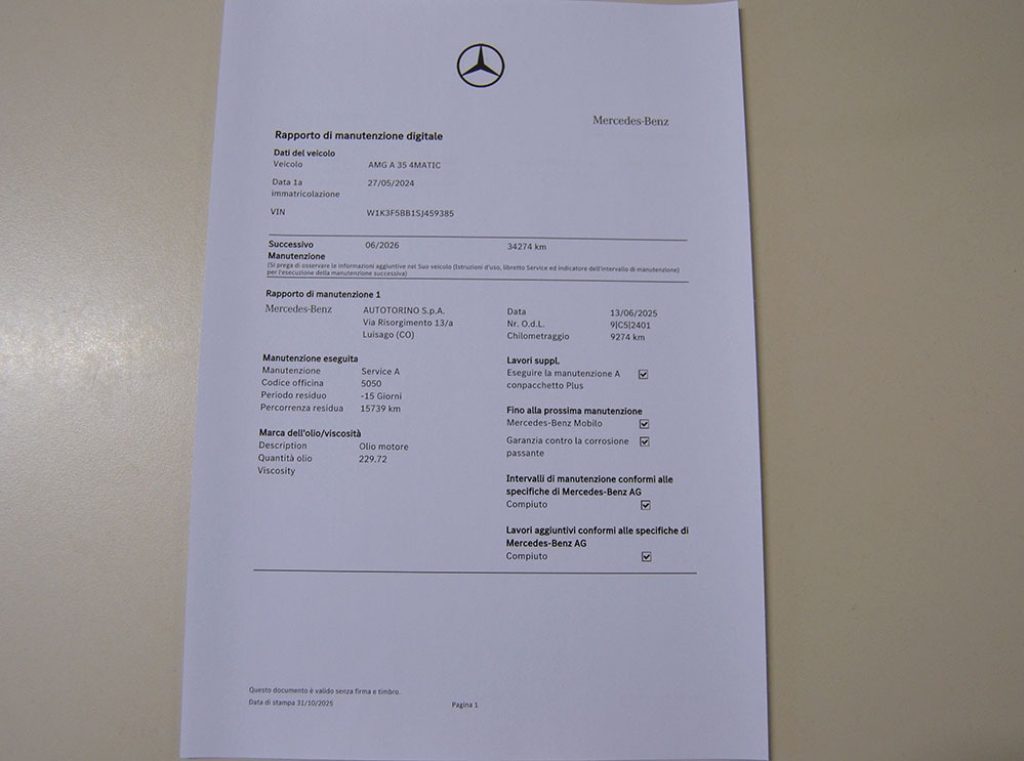 ** PREZZO PROMOZIONALE FINANZIANDO UN MINIMO DI € 30.000,00, PREZZO SENZA PROMO € 46.990,00. FANTASTICA A 35 AMG 4MATIC IN CONDIZIONI PARI AL NUOVO CON SOLI 12.000 KM CERTIFICATI, UNICO PROPRIETARIO, UFFICIALE ITALIANA, ESEGUITO PRIMO SERVICE M.B. A KM 9.274 IN DATA 13/06/2025, BOLLO E SUPER BOLLO PAGATI SINO AL 05/2026, COMPLETA DI DOPPIE CHIAVI E LIBRI USO E MANUTENZIONE ORIGINALI.