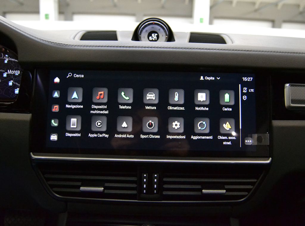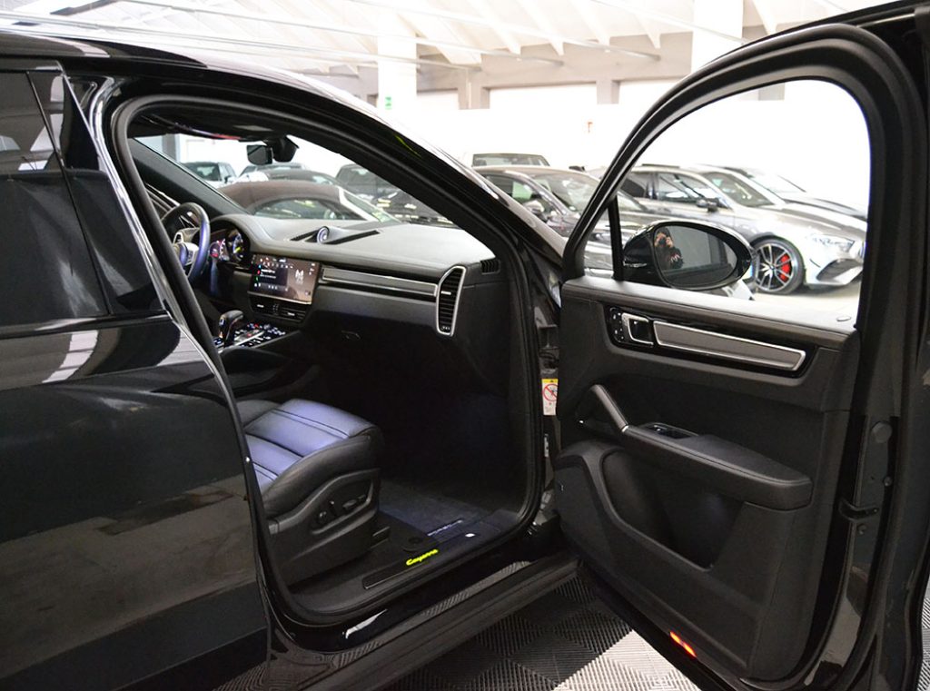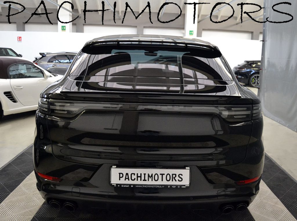COLORE ESTERNO NERO CROMITE METALLIZZATO - INTERNI IN PELLE TOTALE NERA COMPRESO CRUSCOTTO E PANNELLI PORTE - SEDILI VENTILATI ANTERIORI - RISCALDAMENTO SEDILI ANTERIORI E POSTERIORI - SEDILI COMFORT ANTERIORI ELETTRICI A 14 VIE CON PACCHETTO MEMORY - STEMMA PORSCHE IMPRESSO SUL POGGIABRACCIA NELLA CONSOLE CENTRALE - STEMMA PORSCHE IMPRESSO SUGLI APPOGGIATESTA - CLIMATIZZATORE AUTOMATICO A 4 ZONE - IONIZZATORE - SEDILI POSTERIORI 2+1 CENTRALE - ISOFIX - AIRBAG LATERALI POSTERIORI - CINTURE DI SICUREZZA GRIGIE - VOLANTE IN PELLE MULTIFUNZIONE CON PADDLES - ADAPTIVE CRUISE CONTROL INCLUSA FUNZIONE EMERGENCY STOP - FONDOSCALA STRUMENTI BIANCO - FONDOSCALA BUSSOLA SPORT CHRONO BIANCO - NAVIGATORE CARTOGRAFICO 16/9 CON SCHERMO TOUCH SCREEN CON USCITA USB, RADIO DAB, BLUETOOTH - APPLE CARPLAY E ANDROID AUTO - BOSE SOUND SYSTEM - VANO PER SMARTPHONE CON RICARICA WIRELESS - PACCHETTO SPORT CHRONO CON SELETTORE DI MODALITA' E DYSPLAY DELLA BUSSOLA SUL CRUSCOTTO - LUCI SOFFUSE CON POSSIBILITA' CAMBIO COLORE - LANE CHANGE ASSIST - ASSISTENTE AVVISO E FRENATA - LUCI DI CORTESIA A LED SULLE PORTE CON LOGO PORSCHE - LISTELLI SOTTOPORTA SU MISURA IN CARBONIO ILLUMINATI - DENOMINAZIONE MODELLO SULLE PORTE IN NERO - VETRO ISOLATO TERMICAMENTE E ACUSTICAMENTE INCLUSI VETRI PRIVACY, - CHIUSURA SOFT DELLE PORTE - PORTELLONE POSTERIORE ELETTRICO CON APERTURA A SENSORE - KEYLESS GO ( APERTURA/CHIUSURA PORTE E ACCENSIONE MOTORE SENZA CHIAVE ) - TETTO PANORAMICO CON TENDA PARASOLE ELETTRICA - CAVO DI RICARICA ( MODE 3 ) - CARICATORE AC ON-BOARD DA 7,2 KW CON MOBILE CHARGER CONNECT - PARK ASSIST INCLUSO SORROUND VIEW - SOSPENSIONI PNEUMATICHE ADATTIVE CON SISTEMA DI LIVELLAMENTO E REGOLAZIONE DELL' ALTEZZA INCL. PORSCHE ACTIVE SUSPENSION MANAGEMENT ( PASM ) - ASSE POSTERIORE STERZANTE - IMPIANTO DI SCARICO SPORTIVO CON TERMINALI SPORTIVI IN NERO - PARAURTI ANTERIORE SPORT DESIGN - LOGO " PORSCHE " VERNICIATO IN NERO ( OPACO ) INCLUSA ELIMINAZIONE DENOMINAZIONE MODELLO - SPECCHIETTI ESTERNI VERNICIATI NEL COLORE DELL' ESTERNO - FARI PRINCIPALI A LED SCURI CHE INCLUDONO IL PORSCHE DYNAMIC LIGHT SYSTEM (PDLS) - FARI POSTERIORI A LED SCURI INCLUSA FASCIA LUMINOSA - CERCHI IN LEGA DA 21" CAYENNE EXCLUSIVE DESIGN IN PLATINO SATINATO CON PASSARUOTA MAGGIORATI IN COLORE ESTERNO - COPRIMOZZO CON STEMMA PORSCHE A COLORI - SET DI TAPPETINI E VASCA BAULE IN GOMMA.